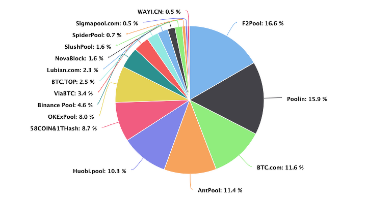 F2Pool is currently the greatest pool by hash speed discussion, contributing to 26.73 EH/s of the total Bitcoin hash rate of 134.6 EH/s. This 19.9% hash rate share suggests that approximately 19.9% of newly minted BTC are mined by this pool — equivalent to 179.1 BTC daily (out of a total of 900 BTC distributed to all miners per day).